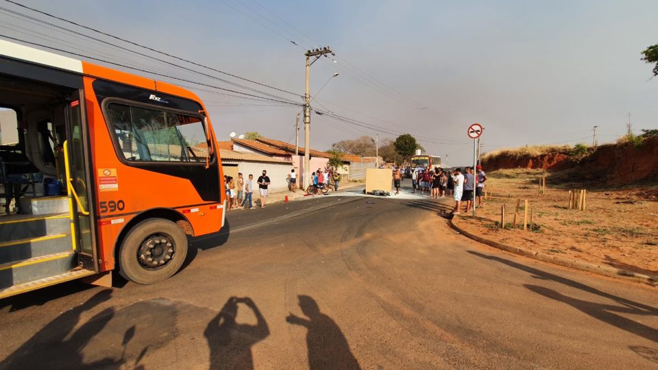 Moto bate em ônibus, pega fogo e deixa um morto