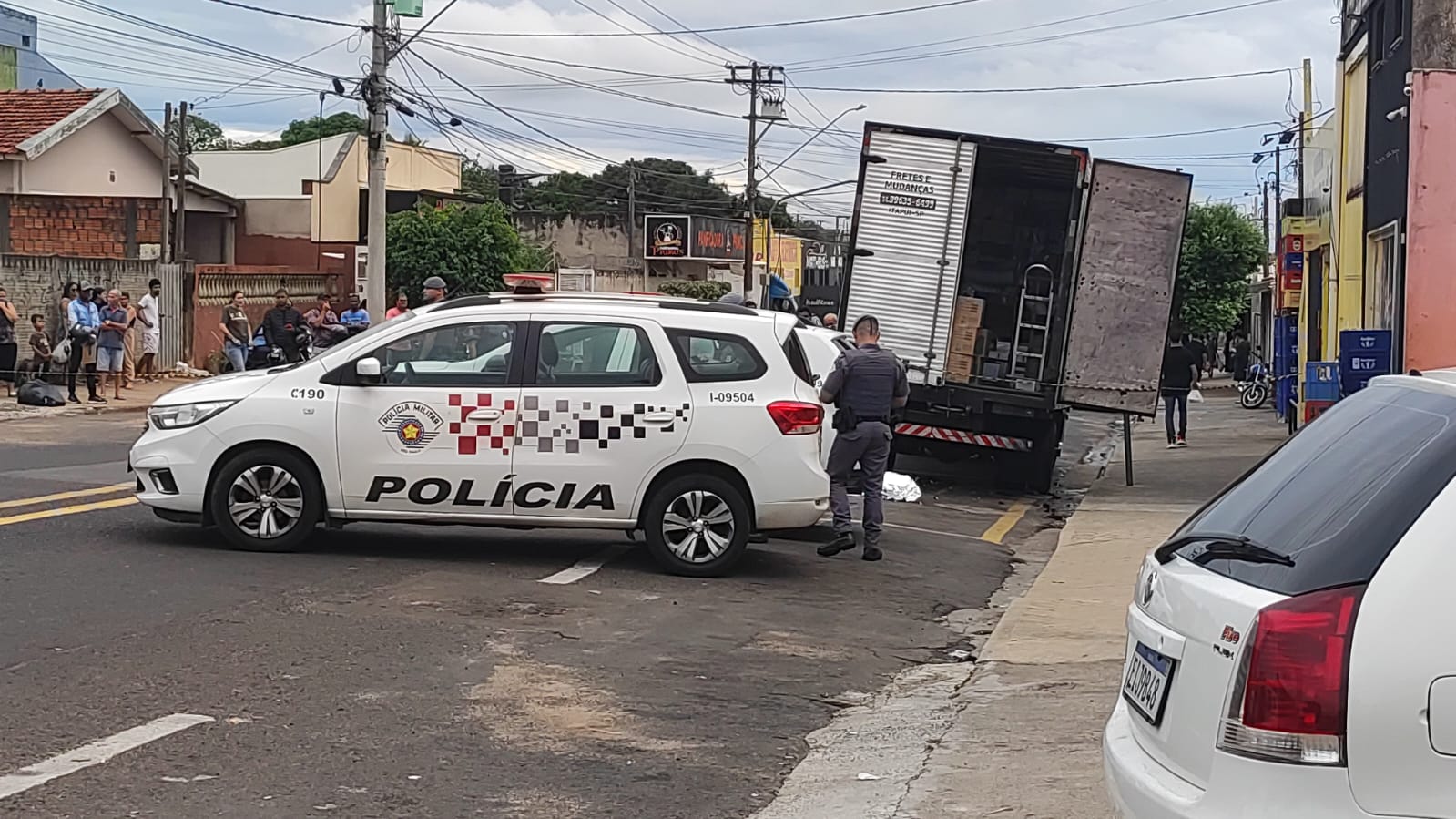 Imagens de câmeras de segurança flagraram o momento do impacto. O motociclista atinge com força a traseira do veículo e cai na sequência, aparentemente já sem vida. A moto ficou presa na parte traseira do caminhão.