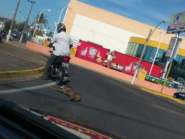 Fotos de um cão amarrado e arrastado por uma moto foram divulgadas na internet e geraram revolta em Matão, no interior de São Paulo. O animal era puxado por uma corda no centro da cidade, segundo testemunhas, após não suportar mais acompanhar o motociclista.