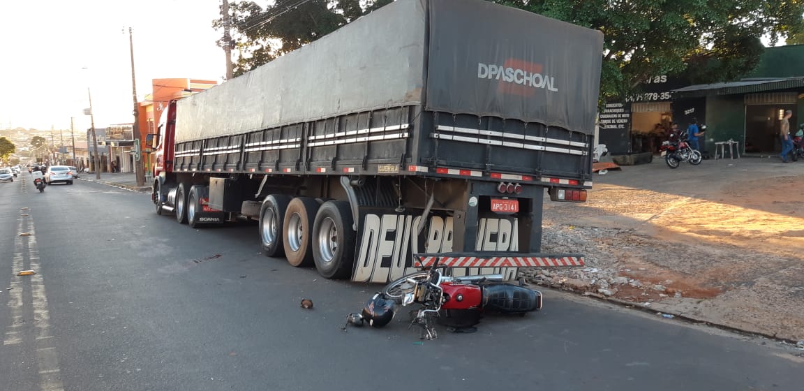 O condutor transitava no sentido bairro ao centro quando bateu violentamente na traseira de uma carreta que estava estacionada.