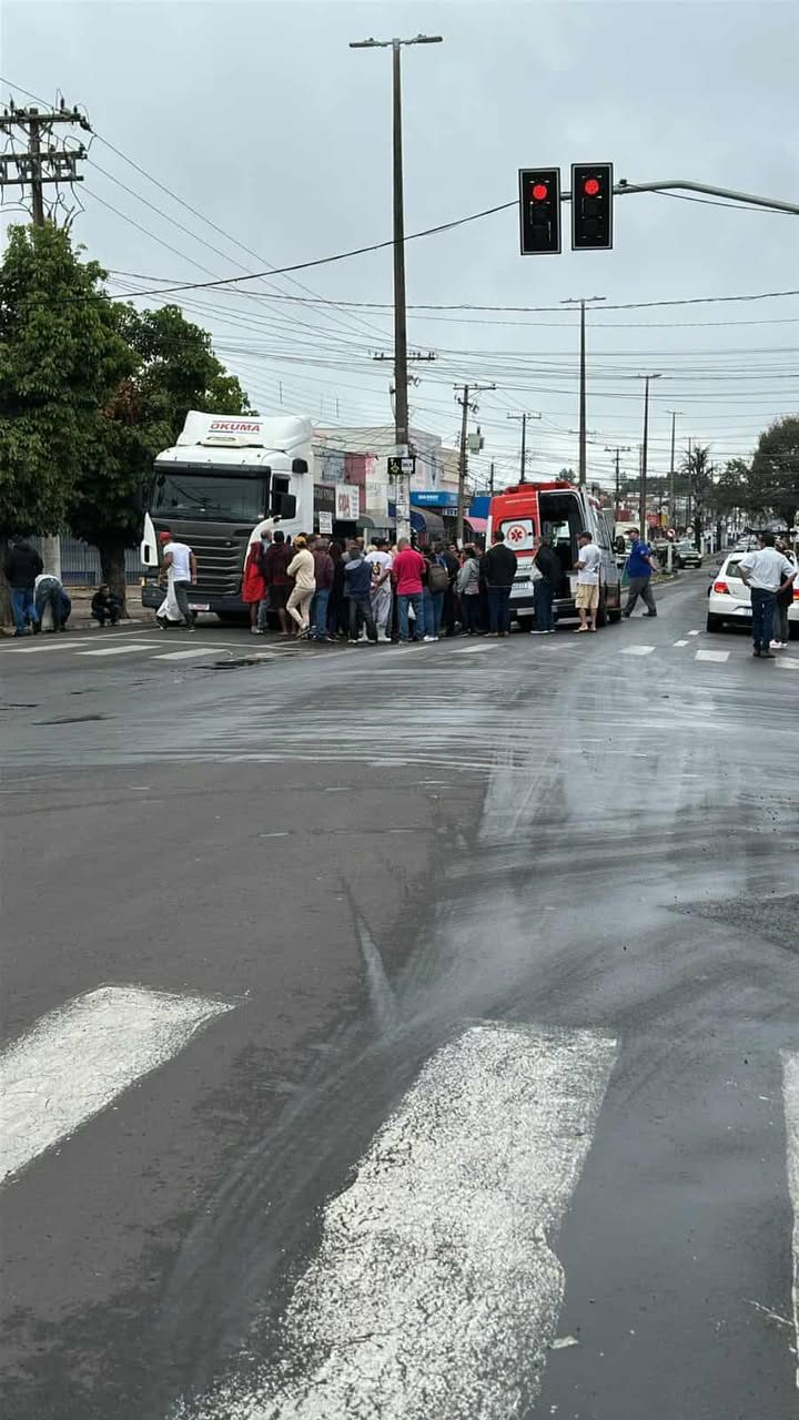 Com a queda, o rapaz, que trabalhava como vendedor em uma loja de calçados, acabou atingido por um caminhão que passava pelo local no momento do acidente.