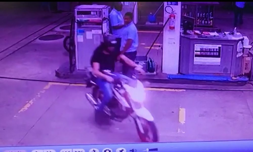 O caso inusitado aconteceu no início da noite desta última quarta-feira (23) e foi flagrado por câmeras de segurança do estabelecimento. As imagens mostram que os frentistas ficaram surpresos e sem reação.