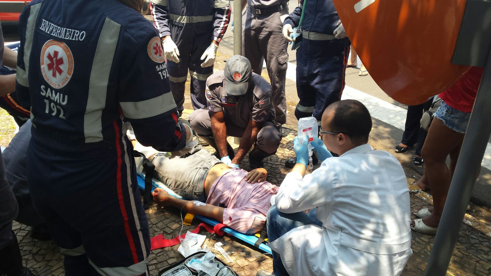 O motociclista sentia muitas dores e foi socorrido por uma unidade do Samu até o Pronto-Socorro do Hospital das Clínicas. Apesar da gravidade do acidente, ele não corre risco de morrer.