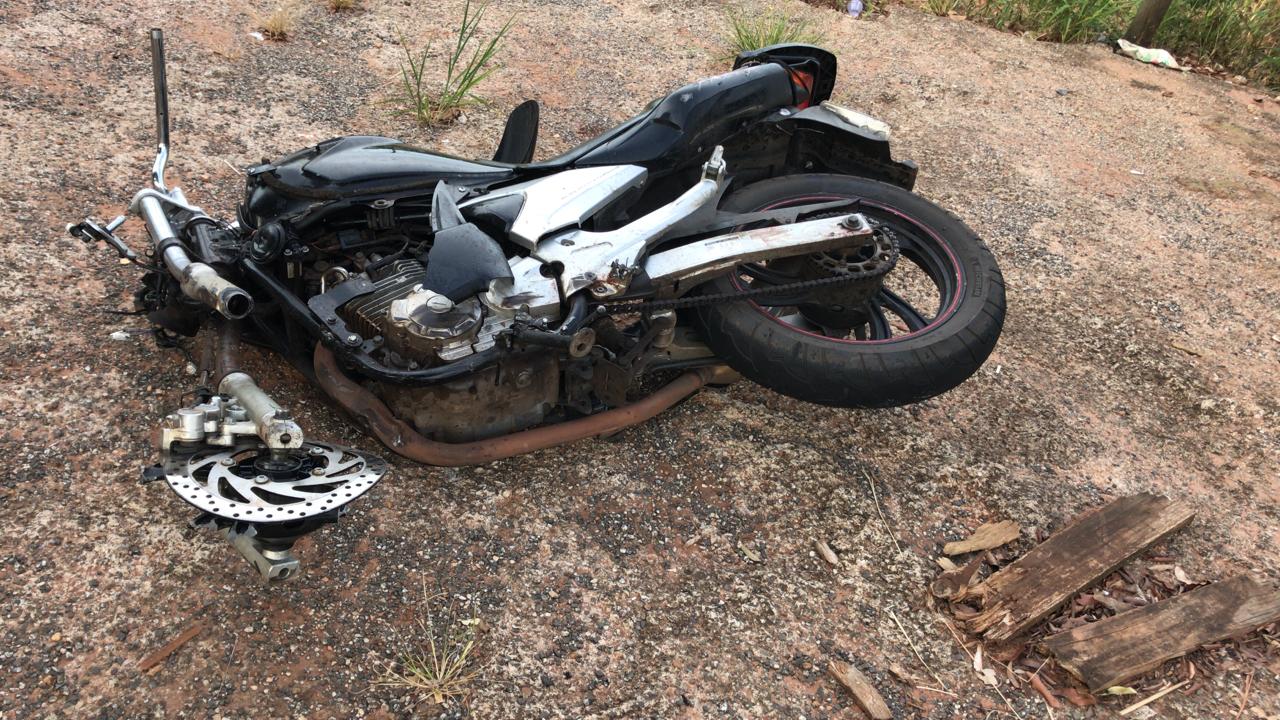 Moto ficou com a frente completamente destruída após o acidente (Foto: Divulgação)