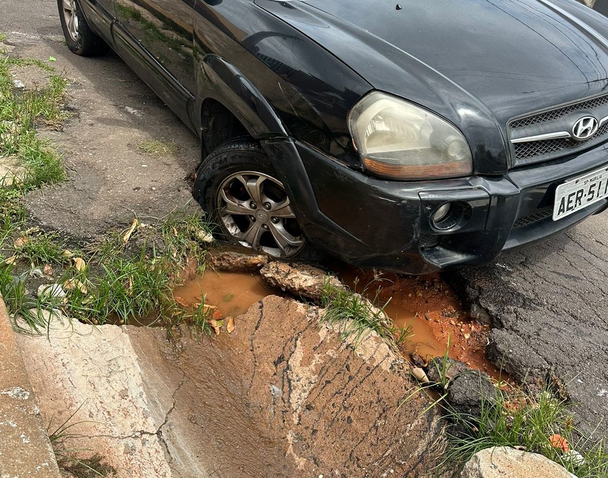 Uma motorista foi surpreendida por uma cratera localizada na guia da rua Olar Durigheto, esquina com a rua Carlos Vilalva, no Parque São Jorge, zona sul de Marília, e registrou o fato para o Marília Notícia.