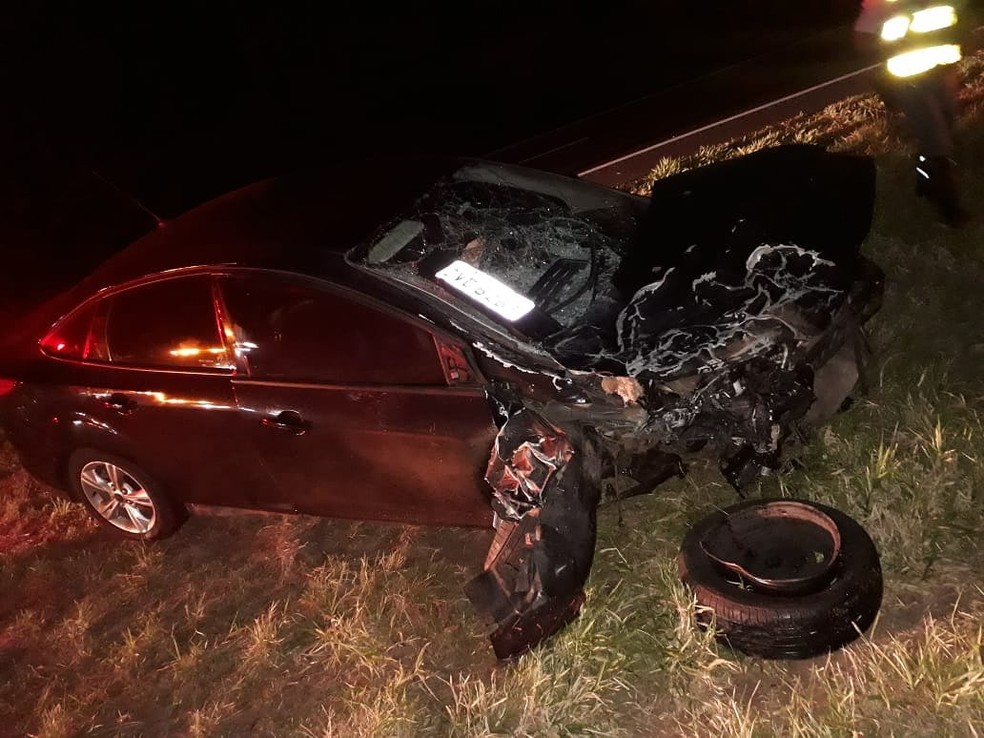 Uma das vítimas, que estava no carro atingido, ficou gravemente ferida.
