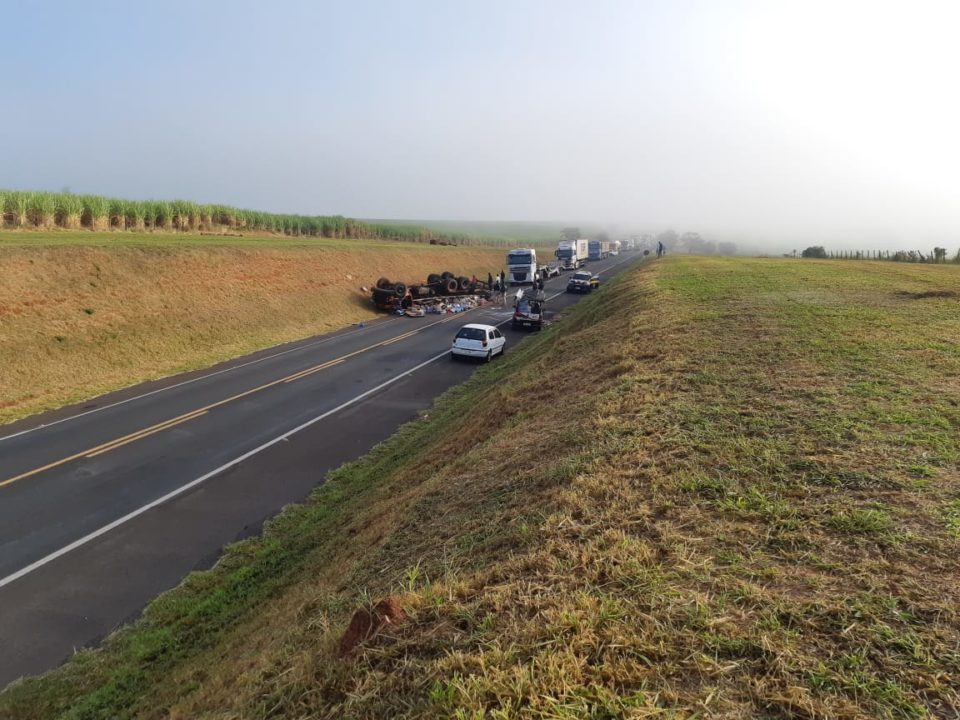 Caminhão tombou e matou motorista mariliense (Foto: Divulgação)