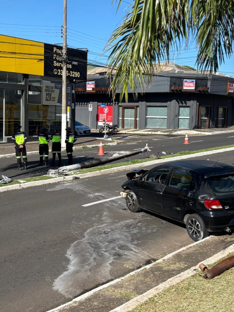 Segundo informações preliminares, o veículo Volkswagen Gol, de cor preta, seguia no sentido bairro–centro quando o condutor teria perdido o controle da direção e avançado sobre o canteiro central. O automóvel atingiu de frente a estrutura, que não resistiu ao impacto.