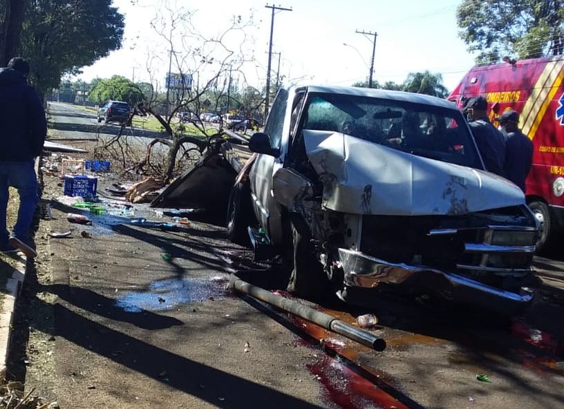 O condutor bateu o veículo violentamente contra uma palmeira plantada na rua Gilfredo Boreti, na entrada principal da cidade.