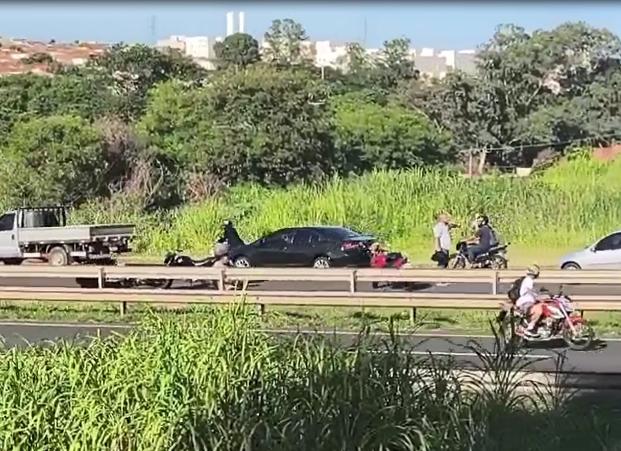 Imagens recebidas pela reportagem mostram uma motocicleta no chão e veículos em baixa velocidade. Apesar disso, ainda não há registro de acidente pela concessionária que administra a via.