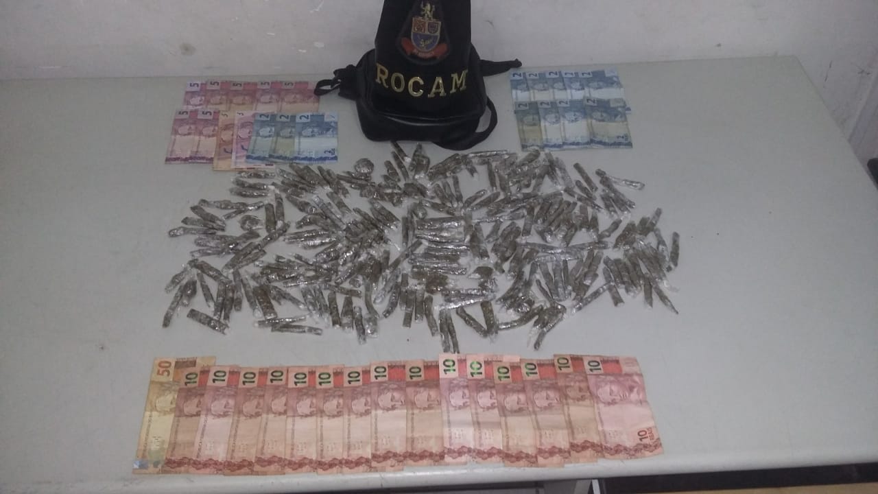 Em seguida, o mototaxista foi abordado e nada de ilícito foi encontrado em seu poder. Ao verificar a bolsa dispensada, os policiais encontraram 214 porções de maconha e R$ 221 em dinheiro. Outros R$ 70 em dinheiro foram localizados no guarda-roupa do apartamento do indiciado.