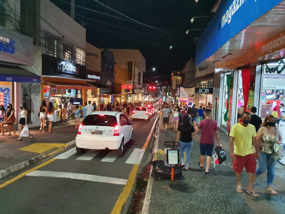 Consumidores finalmente passaram a circular pelas ruas do Centro durante a noite (Foto: Leonardo Moreno/Marília Notícia)