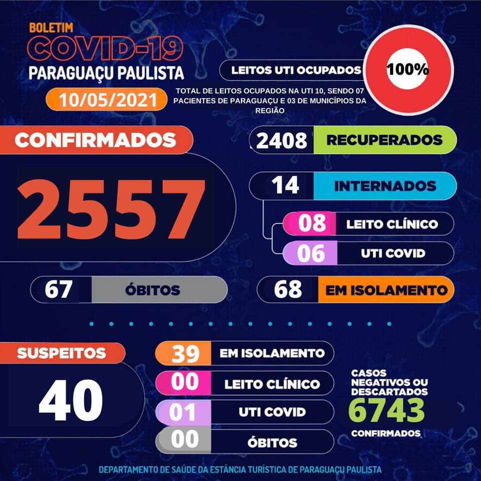 A cidade registra 2.557 casos confirmados, dos quais são 2.408 curados e 67 óbitos.