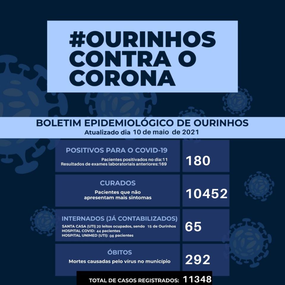 A cidade soma 11.348 casos registrados, dos quais 10.452 estão curados e 292 óbitos.