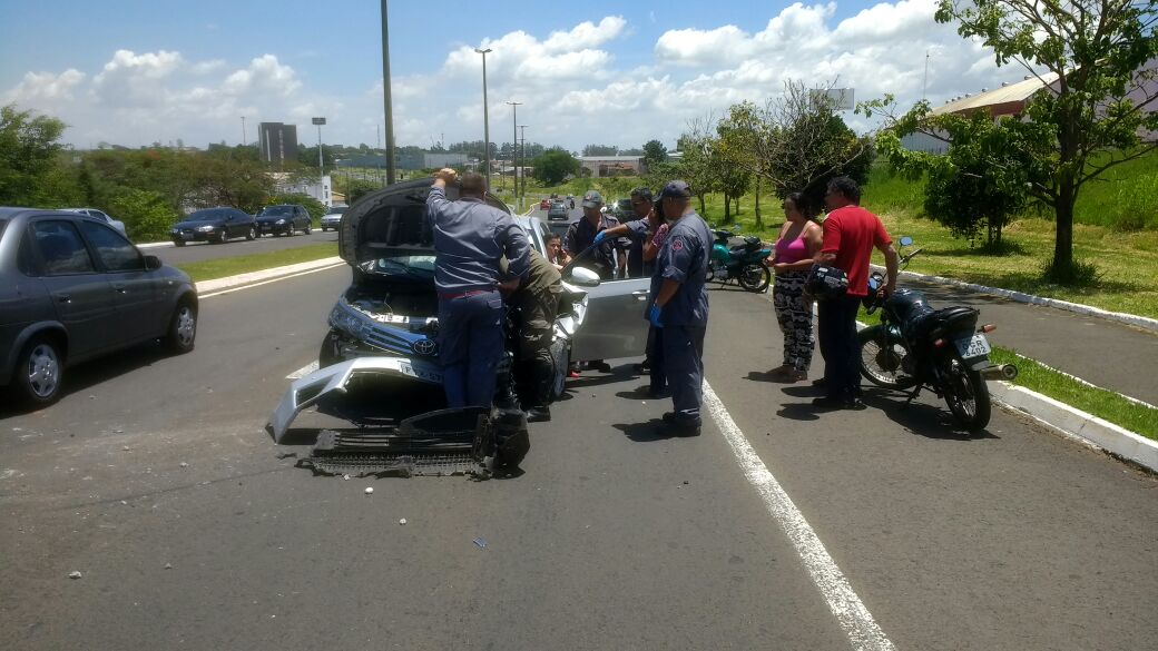 Um acidente de trânsito chamou a atenção no início da tarde desta quinta-feira (10), na Avenida Sanches Cibantos, na zona norte de Marília.