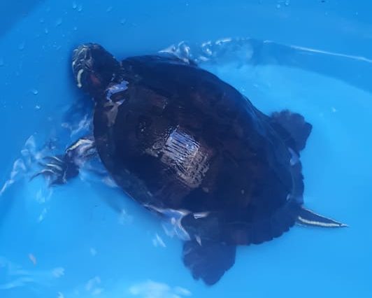 Segundo a Polícia Militar Ambiental, após denúncia, uma equipe foi até o endereço mencionado, onde constatou que uma tartaruga da espécie tigre d’água era mantida em um apartamento térreo.