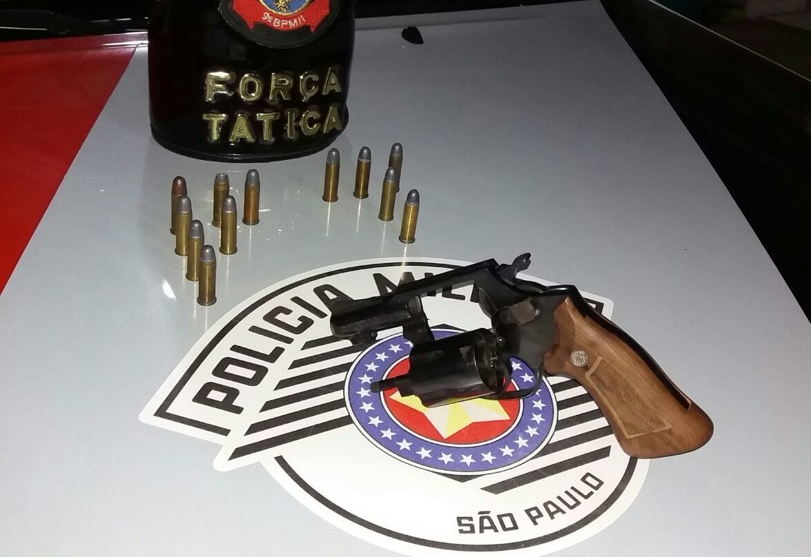 Uma mulher foi presa neste domingo (6) pela Força Tática da Polícia Militar, com um revólver calibre 38, que estava com a numeração raspada e munições.