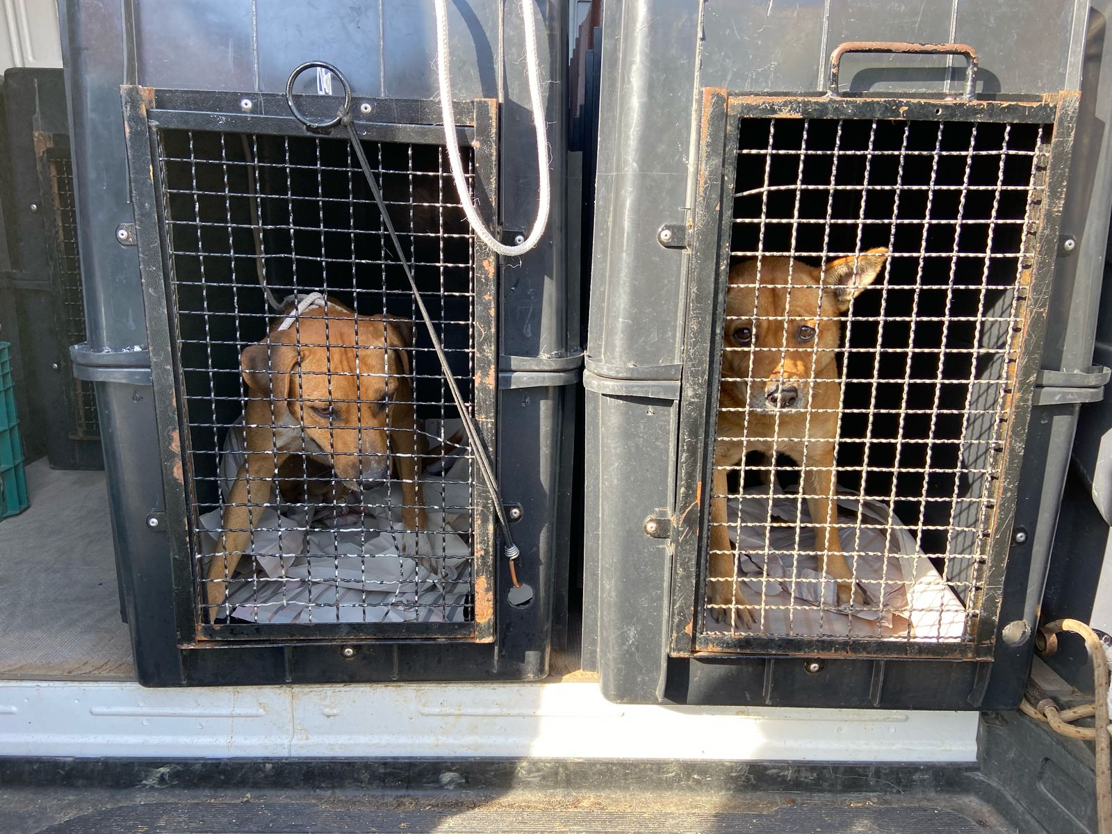 Os dois cães foram resgatados e encaminhados para tratamento veterinário e acolhimento temporário, sob responsabilidade da ONG Spaddes.
