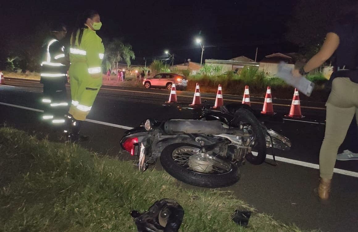 Moto bateu na traseira de caminhão (Foto: Carlos Rodrigues/Marília Notícia)