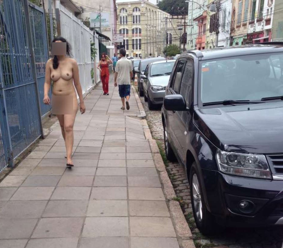 Uma mulher foi fotografada andando nua pelas ruas de Porto Alegre, nesta segunda-feira (30), nos arredores de um shopping localizado na região central da cidade. A cena foi registrada por uma funcionária do centro de compras e logo ganhou as redes sociais.