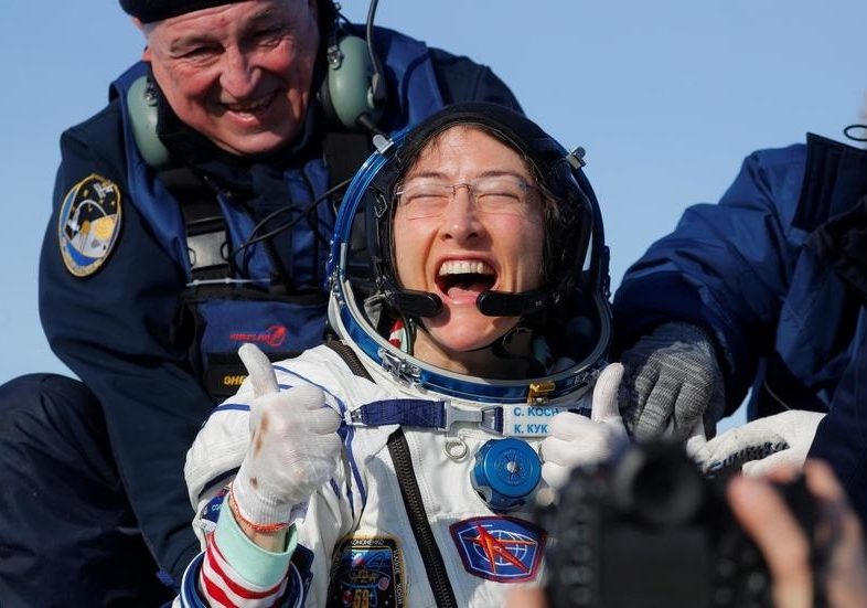 A cápsula Soyuz com Christina Koch, da Nasa, e seus colegas a bordo (o astronauta italiano Luca Parmitano, da Agência Espacial Europeia, e o cosmonauta russo Alexander Skvortsov), pousou ontem no Casaquistão após um voo de três horas e meia. “Estou emocionada e feliz”, disse Christina, sorridente, depois de ser retirada da cápsula. Parmitano fez um gesto com a mão para mostrar que estava bem, enquanto Skvortsov comeu uma maçã logo depois da aterrissagem.