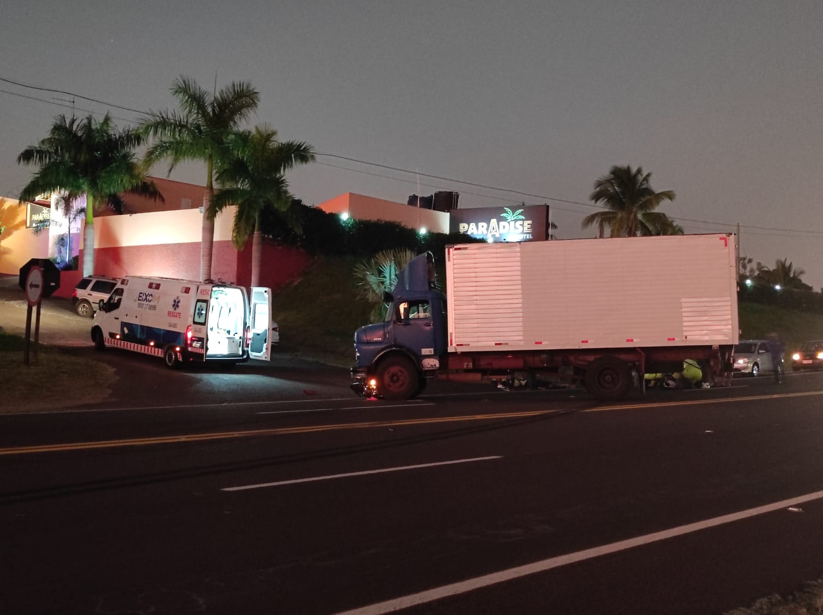 A motociclista não teria visto um caminhão que seguia no mesmo sentido e cruzou a frente do veículo. O motorista do caminhão tentou evitar a colisão, mas não conseguiu.