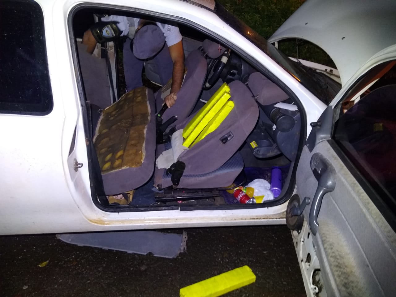 Uma equipe do Tático Ostensivo Rodoviário (TOR) suspeitou de detalhes como o horário, o emplacamento do veículo e o itinerário do deslocamento, e revistou um Corsa, de Porecatu/PR, com duas ocupantes.