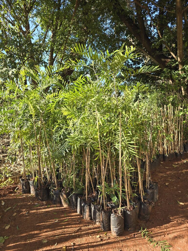 Para quem prefere árvores frutíferas, o viveiro oferece cereja-do-rio-grande (79); jabuticaba sabará (100); amora (100); pitanga (70); goiaba (50); araçá amarelo e vermelho (75); palmito-jussara (seis); palmeira-chameadorea (uma) e orquídeas phalaenopsis (duas).