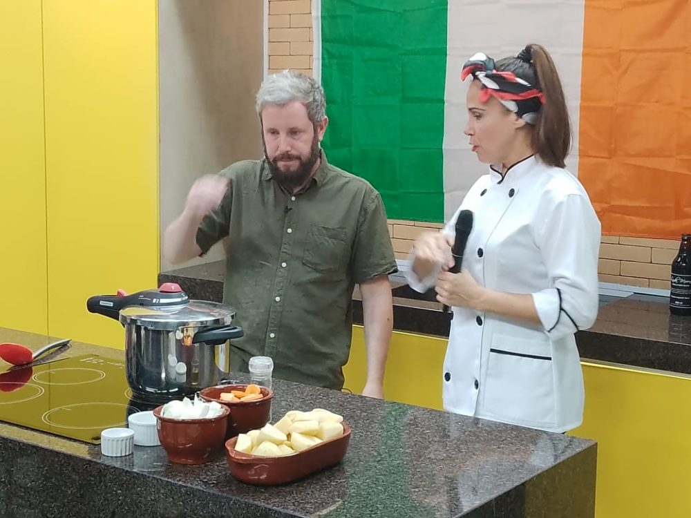O convidado preparou um prato típico de seu país, o Irisch Stew. A refeição irlandesa surgiu em função das condições de pobreza dos irlandeses, pois a receita original não continha proteínas, apenas legumes. Batata, cenoura e cebola eram consumidas sem carne.