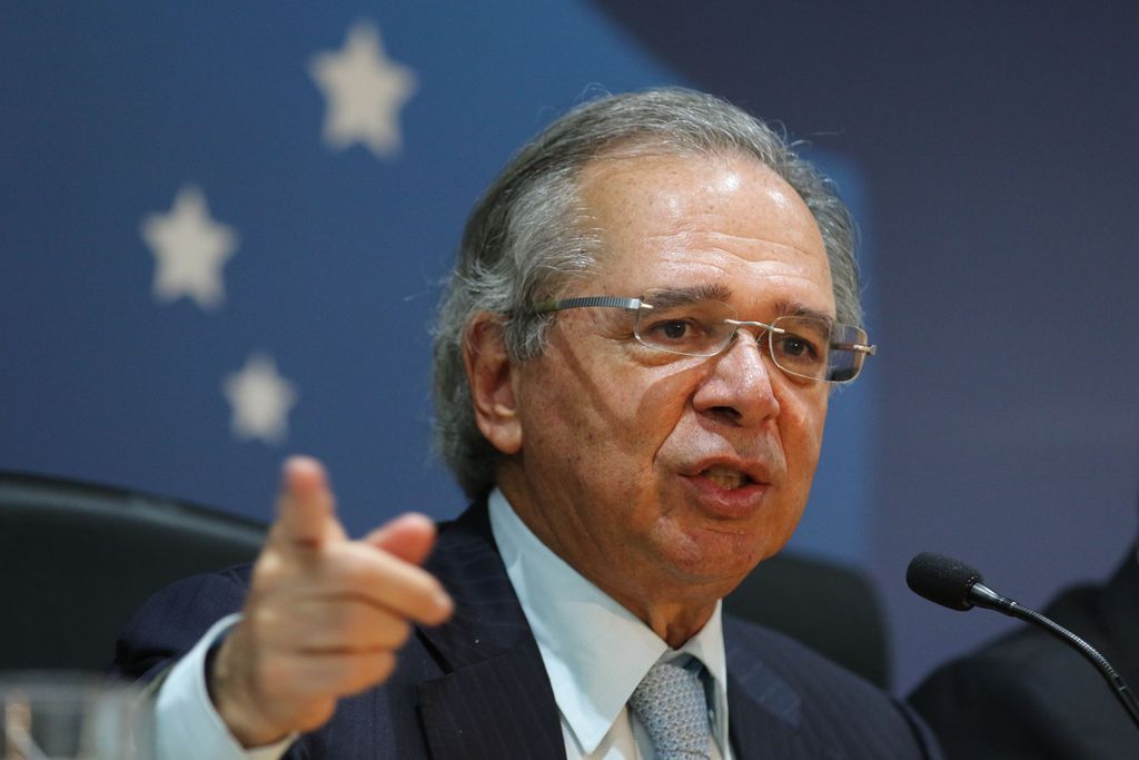 O ministro da Fazenda, Paulo Guedes, apresenta à imprensa as propostas do Pacto Federativo
