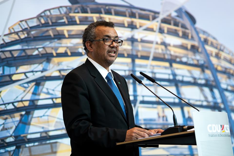 08 May 2019, Berlin: Tedros Adhanom Ghebreyesus, Director General of the World Health Organization (WHO), speaks at the congress of the CDU/CSU parliamentary group in the German Bundestag on the topic "Strengthening global health, implementing UN sustainability goals". Photo: Bernd von Jutrczenka/dpa (Photo by Bernd von Jutrczenka/picture alliance via Getty Images)