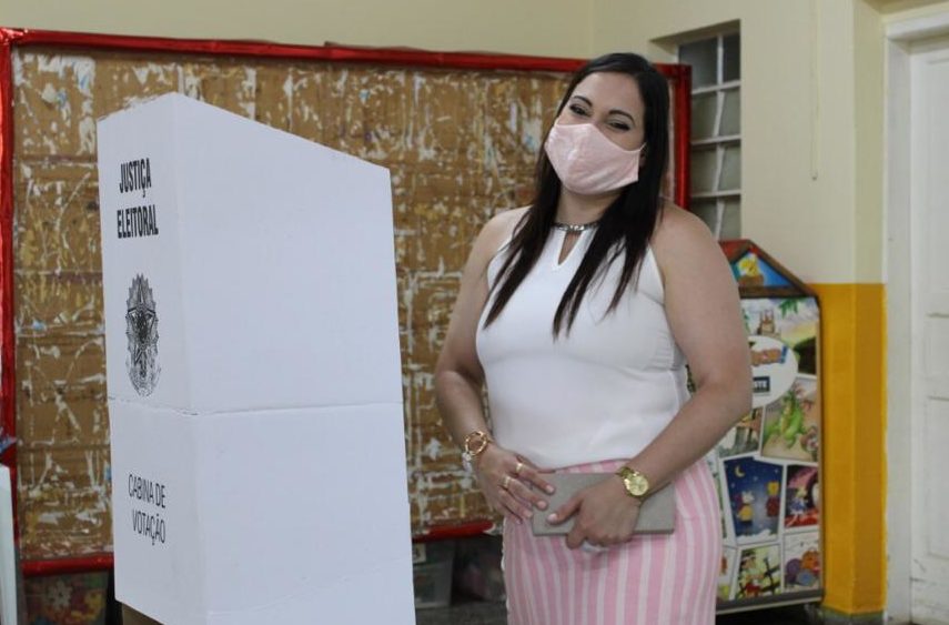 A candidata a prefeita Nayara Mazini (PSOL) votou durante o final da manhã, na Escola Municipal Monteiro Lobato, no Centro de Marília. Ela chegou na companhia do candidato a vice, André Lisque.