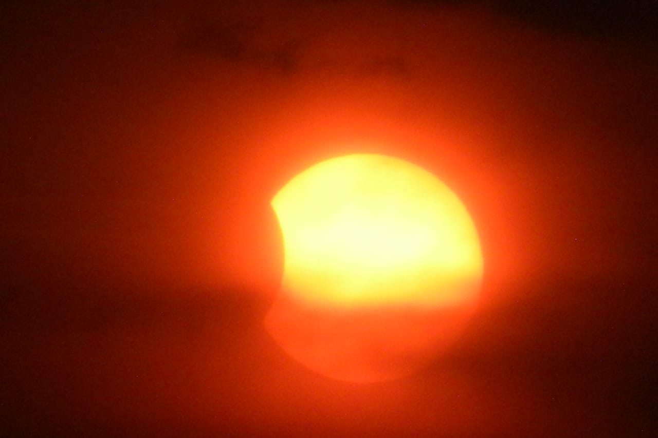 “Foi a oportunidade única para as fotos. Essas primeiras imagens, com o céu avermelhado, foram capturadas sem nenhum filtro. Foi a atmosfera que ‘fez o trabalho’, devido à fuligem e às nuvens, gerando essa coloração”, explicou o astrônomo amador.
