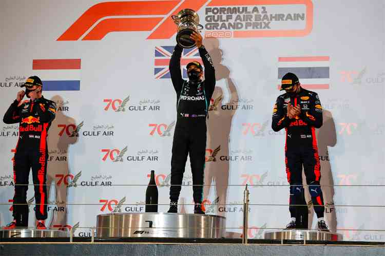Hamilton foi seguro e manteve a liderança nas três largadas no circuito de Sakhir. O heptacampeão mundial controlou a corrida à sua maneira e não foi ameaçado em nenhum momento, correndo em outro patamar em relação aos adversários. Foi um passeio para ele no Bahrein, onde já havia dito que não iria tirar o pé. Pelo contrário, afirmou que iria dirigir “mais leve” e com menos pressão depois de ter assegurado o sétimo titulo na categoria há duas semanas, na Turquia.