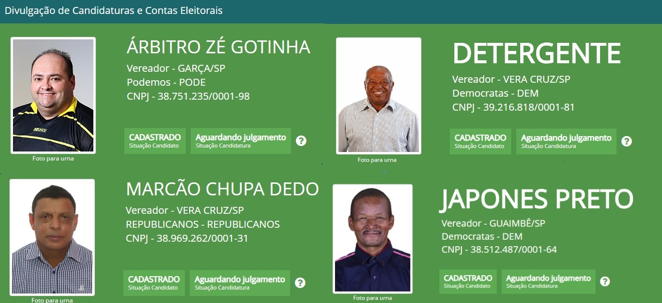 Candidatos de Garça, Vera Cruz e Guaimbê chamam a atenção pelas escolhas dos nomes de urna (Fonte: TSE – Arte: MN)