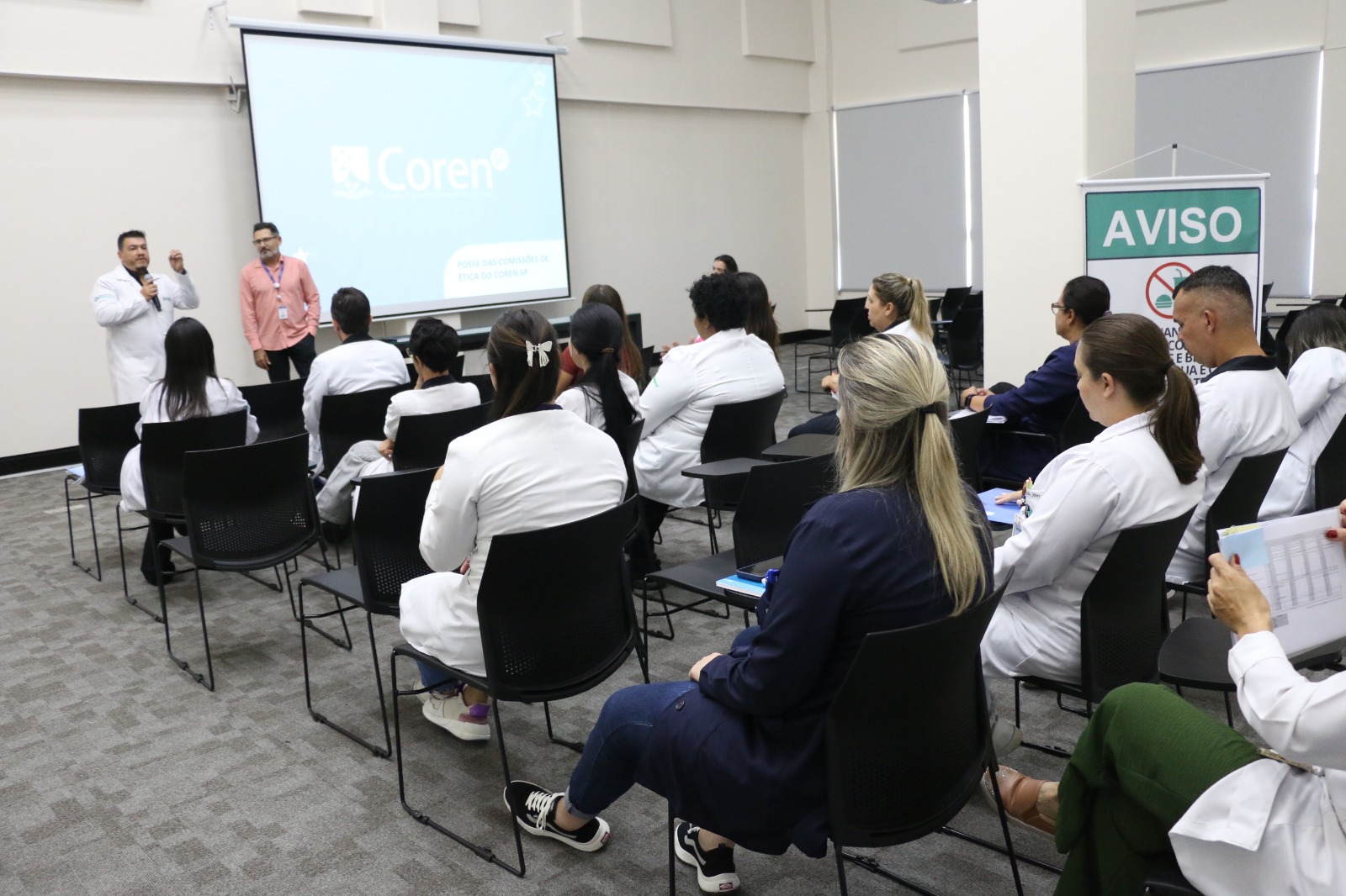 A cerimônia de posse da nova Comissão de Ética de Enfermagem do Hospital Beneficente Unimar (HBU) contou com a presença de representantes do Conselho Regional de Enfermagem (Coren), reforçando a parceria entre a Instituição para promover práticas éticas e educativas no ambiente hospitalar.