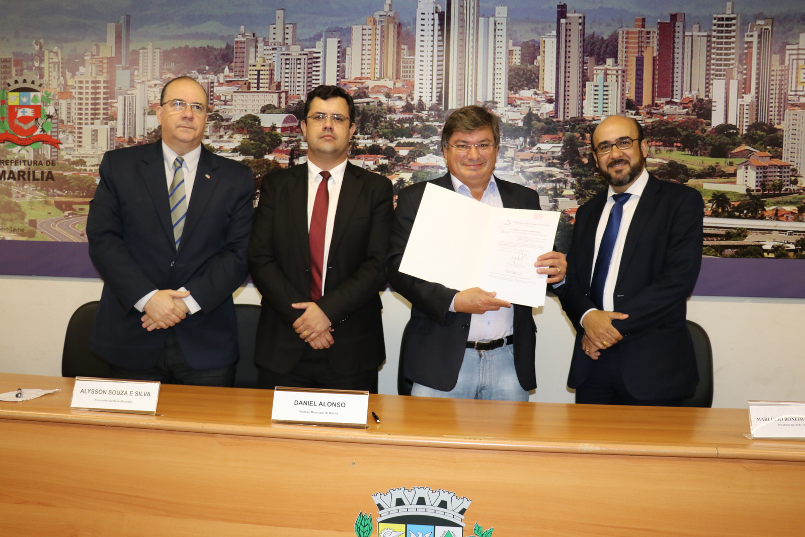 A solenidade para sancionar a lei foi realizada no auditório do 2º andar do Paço Municipal e contou com as presenças do prefeito Daniel Alonso; do presidente da OAB (Ordem dos Advogados do Brasil) Marília, Marlúcio Bonfim Trindade; do vereador Marcos Custódio e dos secretários municipais Alysson Alex Souza e Silva (Procurador Geral do Município), Levi Gomes de Oliveira (Fazenda), Ricardo Sevilha Mustafá (Administração), Mônica Regina da Silva (presidente do Ipremm), Valquíria Galo Febrônio Alves (Corregedora Geral do Município), Vicente Moraes (diretor administrativo da Emdurb) e Márcio Augusto Spósito (Chefe de Gabinete), além de dezenas de advogados que lotaram o local.