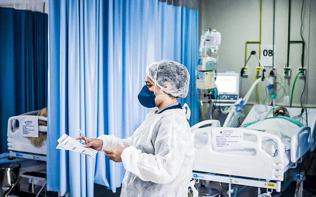 RIO DE JANEIRO, BRAZIL â APRIL 08 : Health workers struggle to save lives in the Intensive Care Unit of the Municipal Hospital Sao Jose, in Duque de Caxias, Rio De Janeiro, on April 8, 2021. Brazil recorded 4,249 deaths from Covid-19 in the last 24 hours, total exceeds 345 thousand deaths according to figures updated by the National Council of Health Secretaries (Conass) and the Ministry of Health on Thursday. (Photo by Fabio Teixeira/Anadolu Agency via Getty Images)