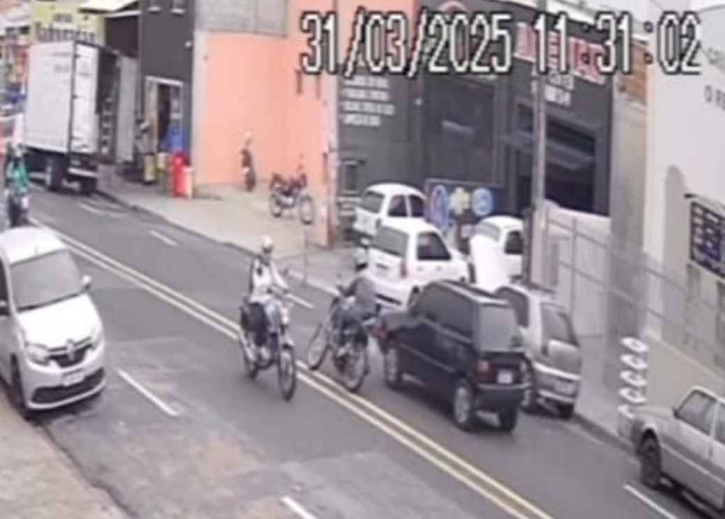 É possível ver que nenhum outro veículo atinge a vítima, que aparentemente perde sozinha a direção da motocicleta. A outra imagem do acidente, publicada pelo MN, mostrava apenas o momento do choque.