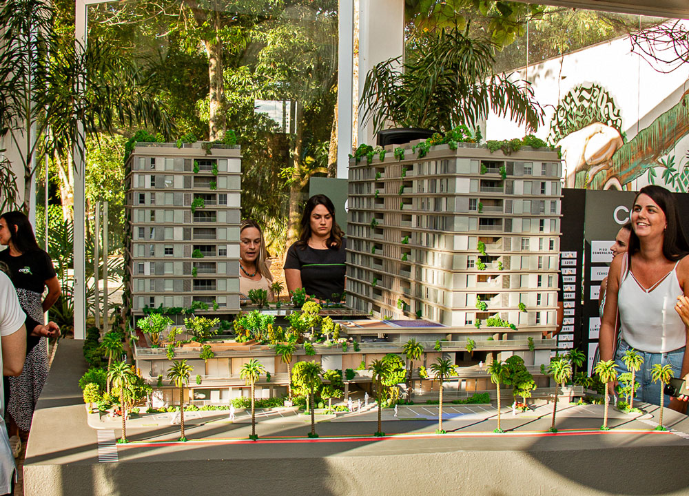 “É uma coisa bem diferente aqui na cidade. Como não sou morador de apartamento, eu sinto muita falta de área verde e vamos ter isso aqui no Cora. Foi um dos motivos para fechar o contrato. Agora fica a expectativa. Pretendemos morar no apartamento. A princípio nós queríamos comprar para investimento, mas quando vimos o projeto, a gente optou em morar nele”, conta Marcelo Mittermayer.