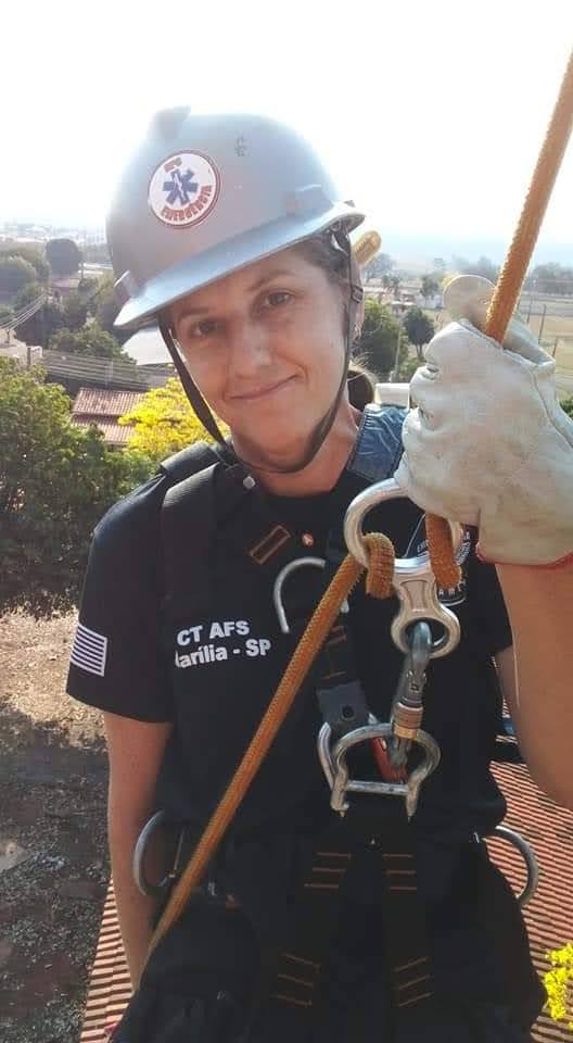 Hoje, nós mesmos do grupo ministramos esses cursos, pois sou técnica de enfermagem, meu marido é bombeiro civil, e temos outros profissionais da área da saúde e especialistas em rapel na equipe.
