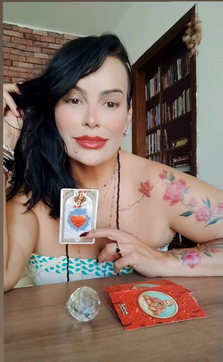 Júlia Javarotti – Acordei um dia com uma necessidade física de segurar um tarot, algo ancestral. Fui até uma livraria e a vendedora disse que não havia tarots porque a dona era evangélica. Mesmo assim, uma voz na minha cabeça insistia que o tarot estava na estante do meio, na terceira prateleira, atrás dos livros. Eu mesma tirei os livros e encontrei um kit com livro e tarot que estava esquecido ali e nem constava no sistema. A partir disso, fui estudar. Minha professora de Tarot Cigano ficou impressionada, porque eu já utilizava técnicas de leitura muito antigas, sem nunca ter aprendido nesta vida.