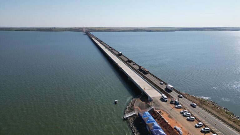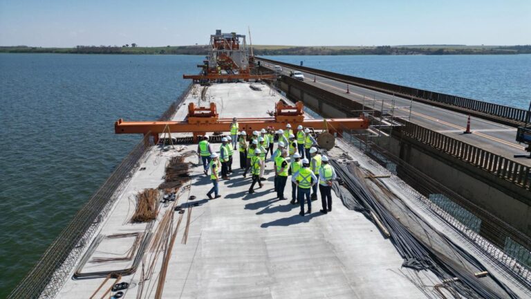 As obras de duplicação da Ponte Engenheiro Gilberto Paim Pamplona, considerada a maior do Estado de São Paulo, alcançaram 60% de execução, informou a Secretaria de Parcerias em Investimentos (SPI). A estrutura, de 2,4 quilômetros de extensão sobre o Rio Tietê, liga os municípios de Novo Horizonte e Pongaí pela SP-333 e deve ser concluída no segundo semestre de 2026.
