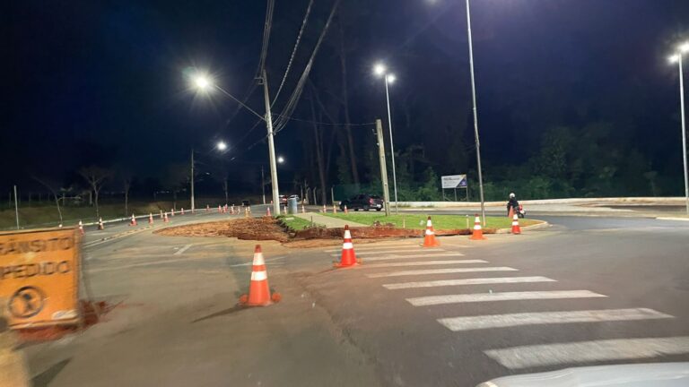 Obras em rotatória atrás do Bosque alteram tráfego e exigem atenção