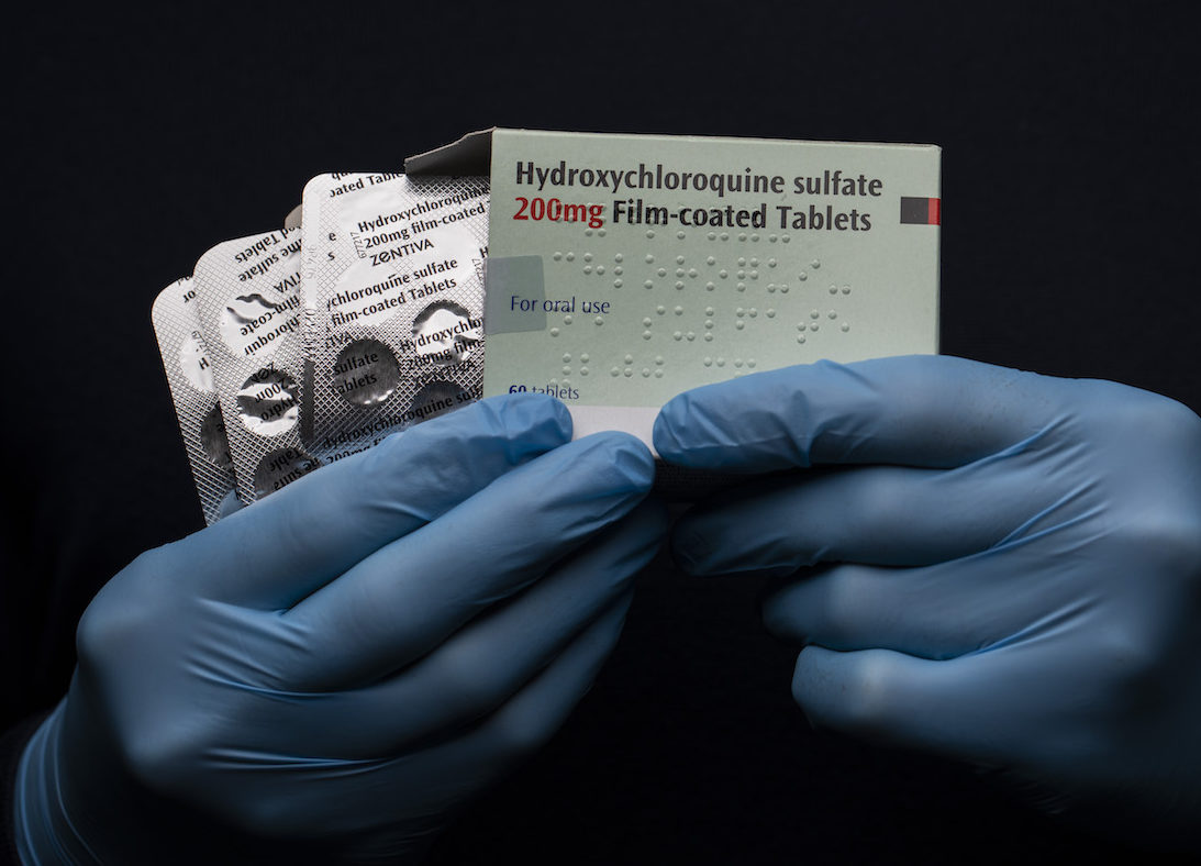 LONDON, UNITED KINGDOM - MARCH 26: In this photo illustration a pack of Hydroxychloroquine Sulfate medication is held up on March 26, 2020 in London, United Kingdom. The Coronavirus (COVID-19) pandemic has spread to many countries across the world, claiming over 20,000 lives and infecting hundreds of thousands more. U.S. President Donald Trump recently promoted Hydroxychloroquine, a common anti-malaria drug, as a potential treatment for COVID-19 when combined with the antibiotic azithromycin. “HYDROXYCHLOROQUINE & AZITHROMYCIN, taken together, have a real chance to be one of the biggest game changers in the history of medicine,” President Trump tweeted last week. (Photo by John Phillips/Getty Images)