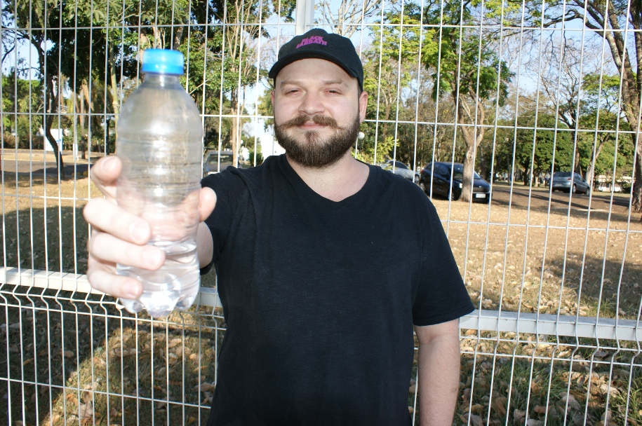 Leonardo Augusto Franco carrega garrafinha de água para se hidratar com o forte calor (Foto: Alcyr Netto/Marília Notícia)