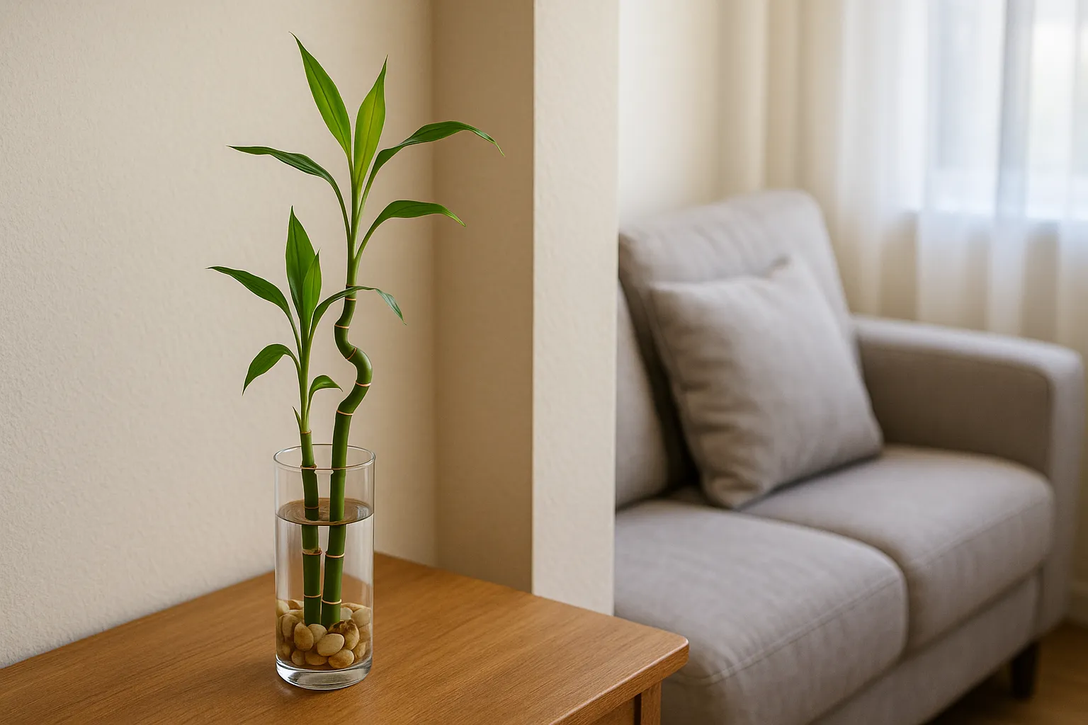 Para quem busca atrair mais prosperidade, a dica é usar o bambu da sorte junto a elementos de madeira e água. Colocá-lo em um vaso de vidro com pedrinhas naturais e água limpa, por exemplo, é uma maneira simbólica de unir os cinco elementos do Feng Shui: terra (pedras), água (vaso), madeira (planta), metal (moeda chinesa, se desejar decorar) e fogo (representado por uma fita vermelha).