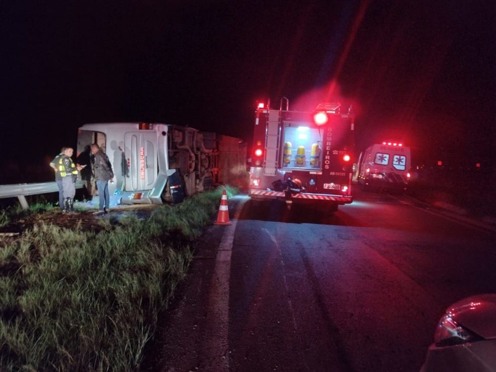 Segundo a Polícia Militar Rodoviária (PMR), o acidente aconteceu 1h50, no quilômetro 315. O condutor do veículo perdeu o controle da direção e o ônibus tombou na área lindeira da rodovia.