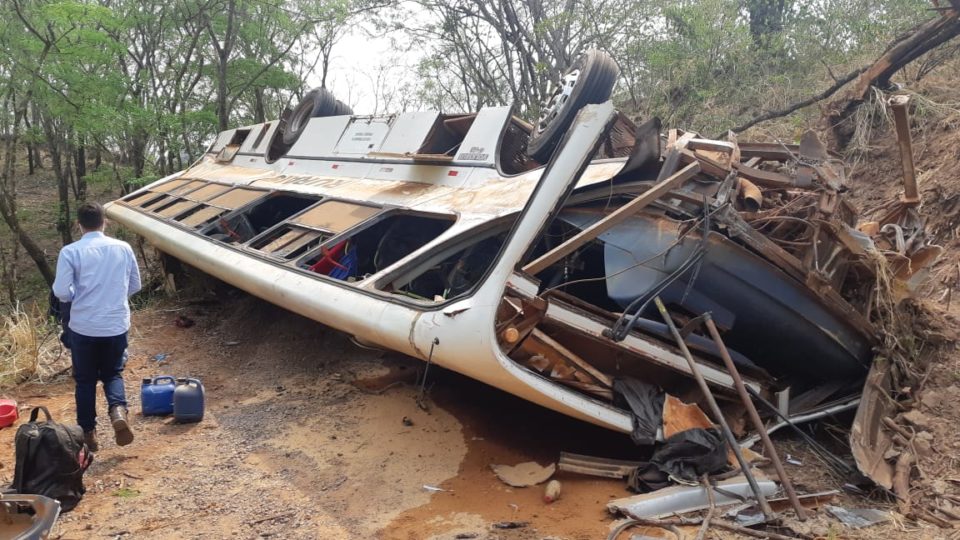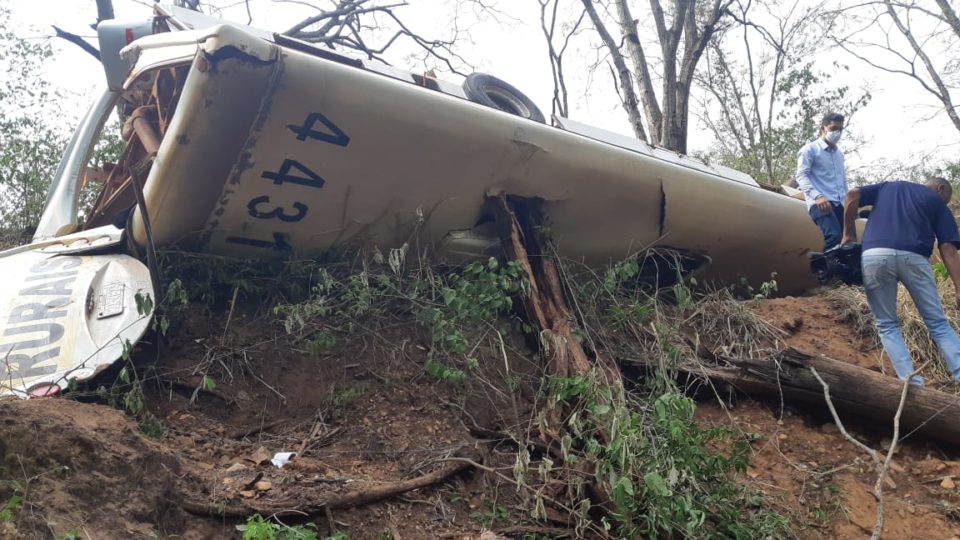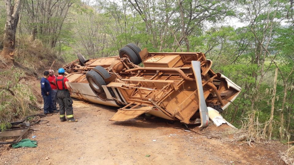 Segundo as primeiras informações, o ônibus, que conduzia vários trabalhadores, tombou ao realizar uma curva em uma estrada de terra próximo ao cemitério.