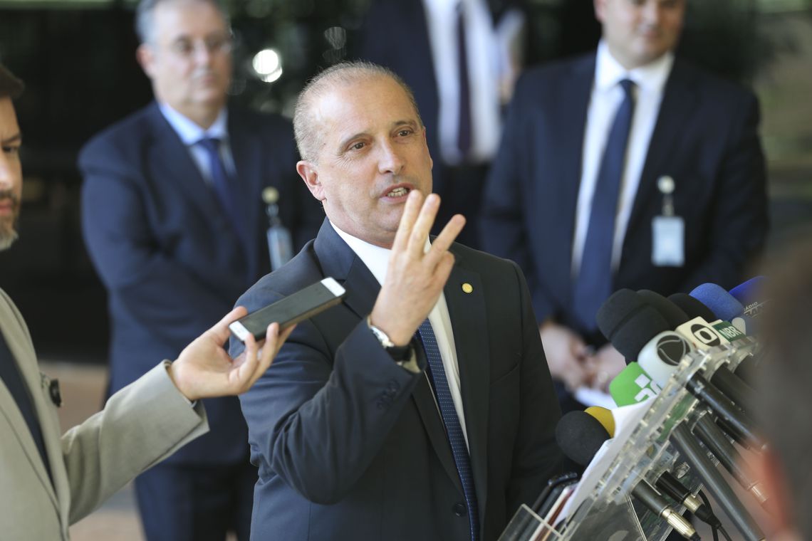 O ministro extraordinário do governo de transição do presidente eleito Jair Bolsonaro, Onyx Lorenzoni, fala à imprensa no Centro Cultural Banco do Brasil (CCBB), em Brasília.